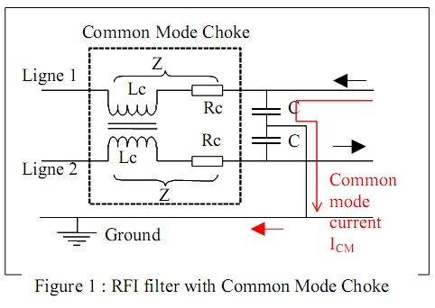 In most of the places of industrial and domestic power supplies, we meet nowadays some Switch Mode Power Supplies (SMPS) allowing tailored and volume reduced energy providers. As a consequence the occurrence of mutual electromagnetic interference between components strongly increase, leading to possible failures of electronic devices used in the neighborhood of each other such as computer, electronics for measurements and electrical machines. As well to control RF emission as to resist to interference, some standards such as EN 55011 provide standard values: peculiarly some frequency dependent limits of noise voltages To control and calibrate conducted noise (<30MHz), the Radio Frequency Interference (RFI) Filters are used; these filters are based mainly on Common Mode Chokes (CMC) surrounded by capacitors and inductances. The noise spectrum from SMPS is generally concentrated from 20kHz to 200kHz, with discrete harmonic components, whereas the noise spectrum from inverters is spread from 10kHz to 30MHz and has to stay under limits depending on applications. The goal of CMC is to reduce the noise voltages below these limits, inside this frequency range. | |||||||||||||||||||||||||||||||||||||||||||||||||||||||||||||||||||||||||||||||||